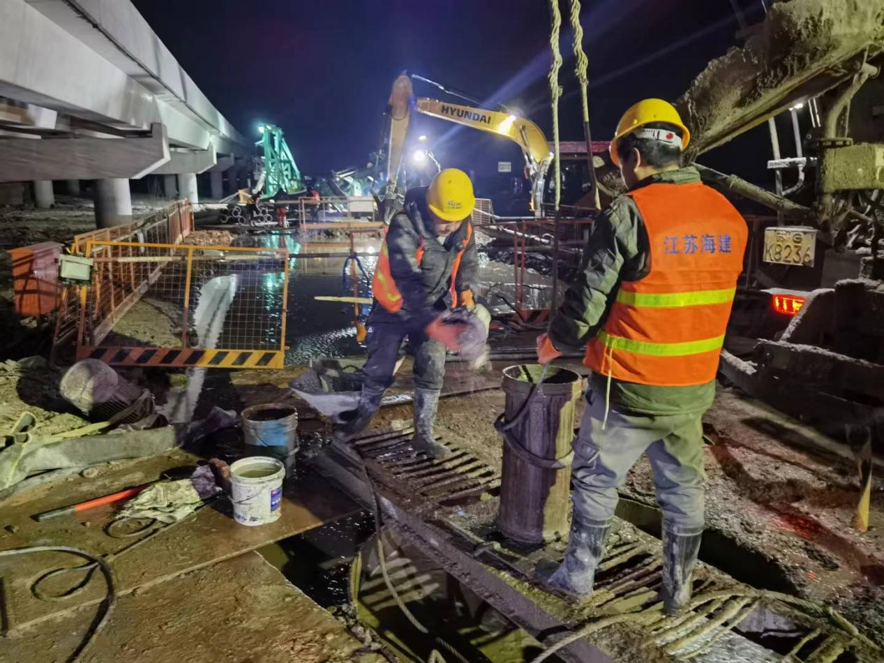 2月23日晚,瀛洲南路改造及南延工程(一期)宁海枢纽上跨主线桥施工现场灯火通明,在紧张有序的施工节奏中,第一根钻孔灌注桩基础顺利完成浇筑。
