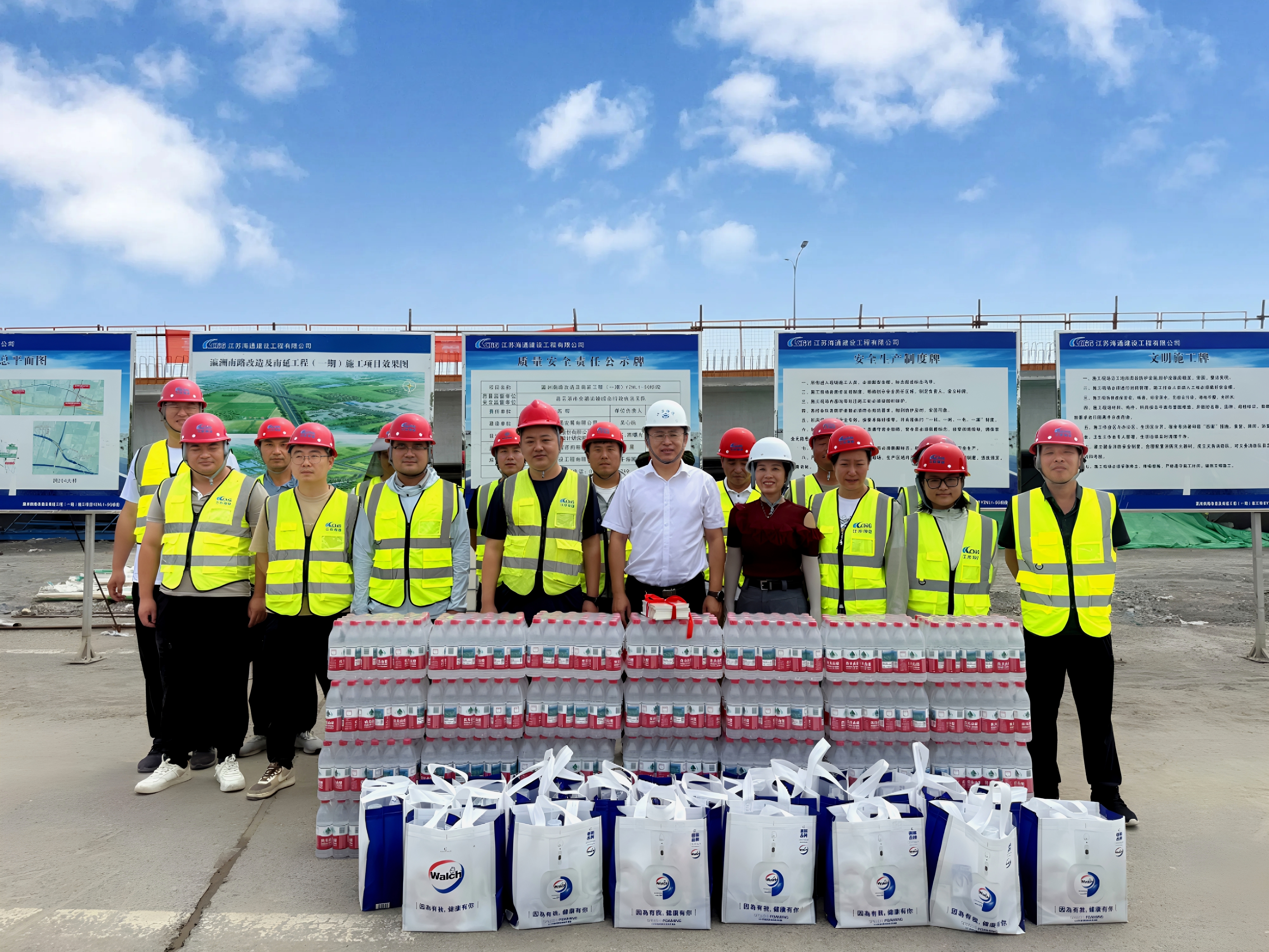 为切实关怀一线职工工作和生活,进一步强化工会服务效能,7月15日,海建千亿官方网页版党委书记、董事长于振国带领工会一行深入施工一线,开展“战高温保生产 工会护航在一线”夏季送清凉活动。此次慰问覆盖高铁片区综合改造一期-北广场东片区地下市政工程及配套工程总承包(EPC)工程、瀛洲南路改造及南延工程的一线职工。