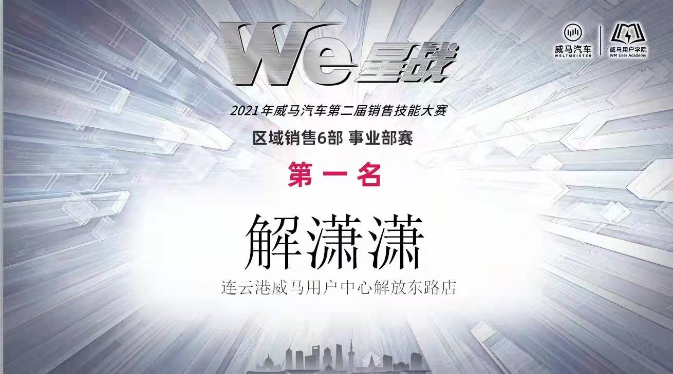 此次比赛从理论考试、知识抢答、情景模拟三大项进行比拼。情景模拟内容围绕需求分析、产品介绍、议价成交展开多维度挖掘参赛选手的实力与风采。考验的是选手扎实的理论知识功底以及服务中的应变能力。在比赛前期,解潇潇精心准备,全力备战,向着店里定下的保二争一的目标,在赛场上沉着冷静,全身心投入比赛。经历一天的比拼,历经重重的考验,明茂汽车销售千亿官方网页版服务大使解潇潇荣获“威马汽车服务大使技能比赛东部赛区第一名”。