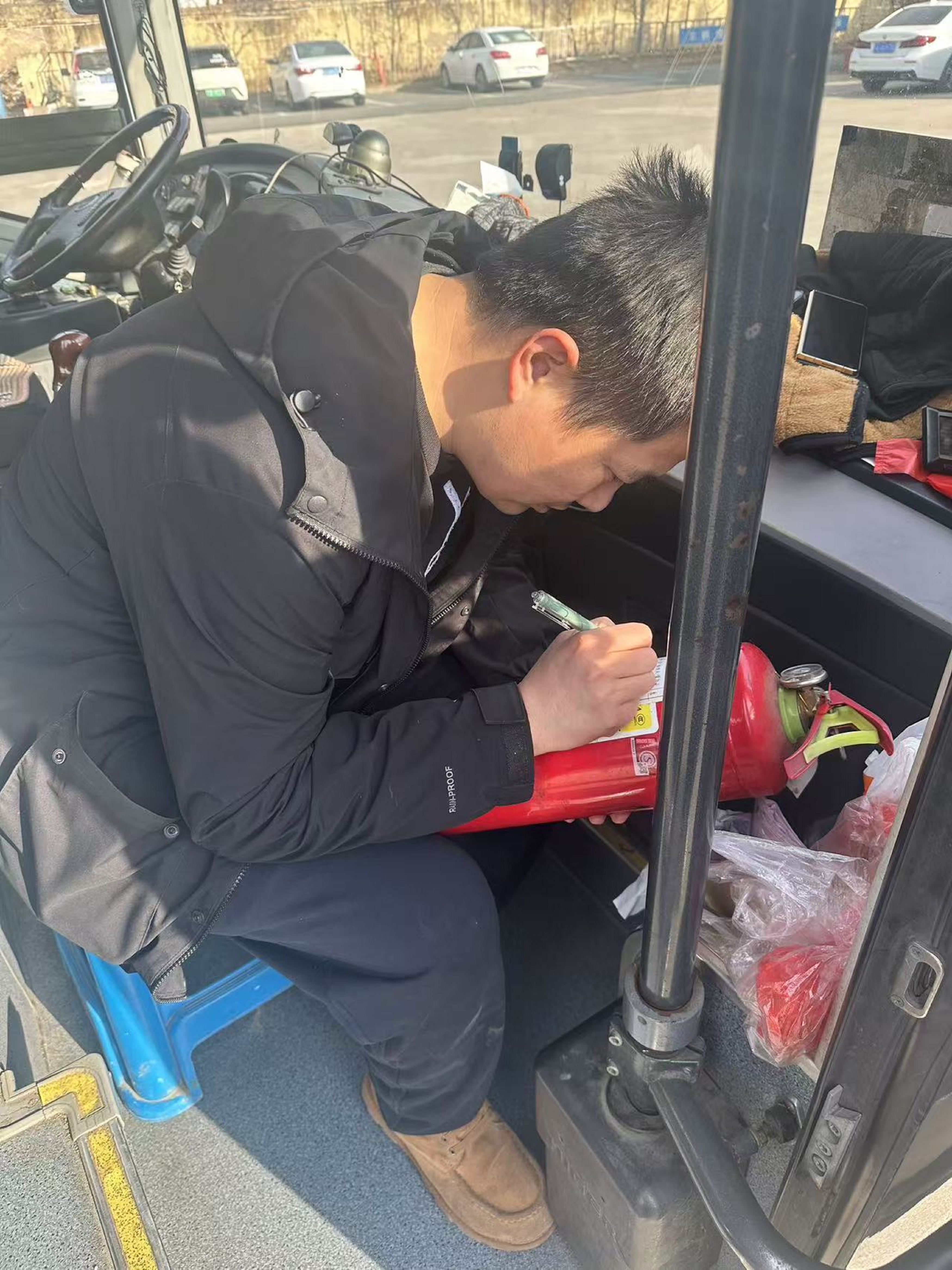 此次排查工作细致入微,覆盖了车辆的多个核心关键系统。在轮胎检查环节,检查人员认真查看轮胎表面是否存在鼓包、划伤等异常情况,确保轮胎性能良好。对于灯光系统,检查人员依次点亮前大灯、转向灯、刹车灯以及尾灯,逐一检查其亮度和闪烁频率,确保车辆灯光能够清晰地传递信号,保障行车安全。在灭火器检查方面,逐个查验灭火器的有效期、压力值和外观,保障其在紧急情况下能正常发挥作用。针对发动机,仔细检查发动机机油、冷却液液位、皮带松紧度,排查各部件潜在故障,深度查看转向系统、助力系统及刹车系统,确保安全可靠。