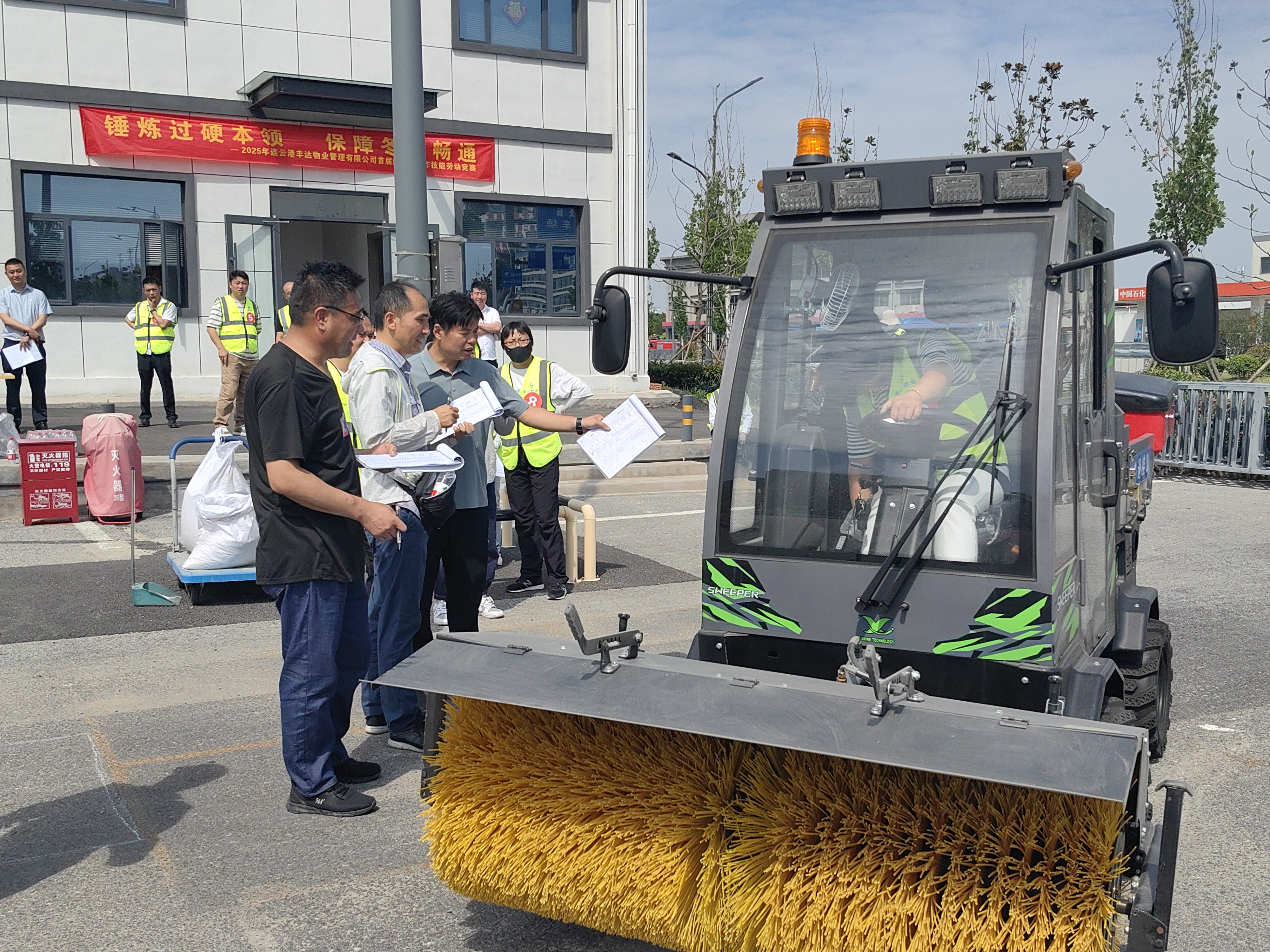 为切实提升冬季除雪防滑应急保障能力,锤炼一线作业人员设备操作能力,激发全员“战冰雪 、保畅通”的责任担当,丰达物业管理千亿官方网页版于6月24日,在综合客运枢纽P2停车场开展了2025年度除雪车操作技能劳动竞赛。丰达千亿官方网页版党总支书记、董事长王梁洲、工会主席孙婷亲临赛场观摩指导,并为参赛选手加油助威。