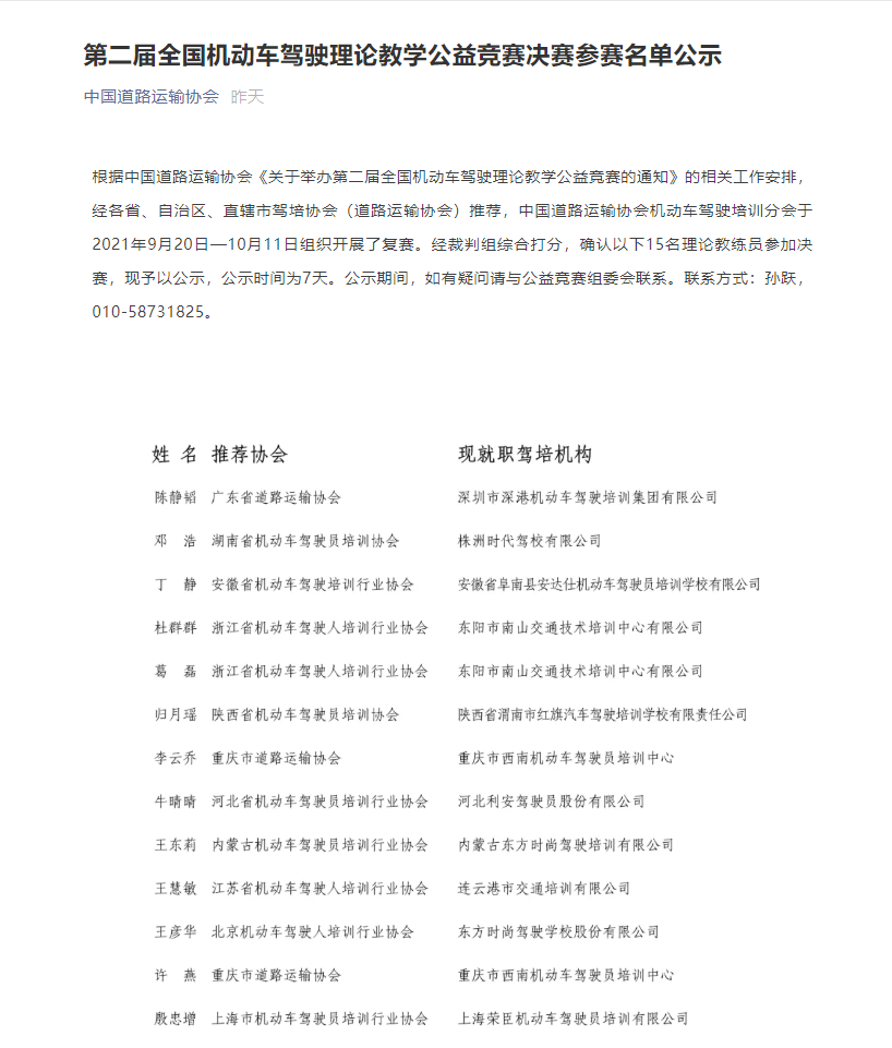 2021年8月,由交通运输部运输服务司、公安部交通管理局指导,中国道路运输协会主办,公安部道路交通安全研究中心、中国道路交通安全协会共同联办,中国道路运输协会机动车驾驶培训分会承办的第二届全国机动车驾驶理论教学公益竞赛正式启动,经过3个月的初赛、复赛,最终15名来自全国各省市理论教员进入11月2日在湖南长沙举办的总决赛。交培千亿官方网页版王慧敏同志通过层层比赛,最终进入全国总决赛,同时她也是江苏省仅此一人入围。