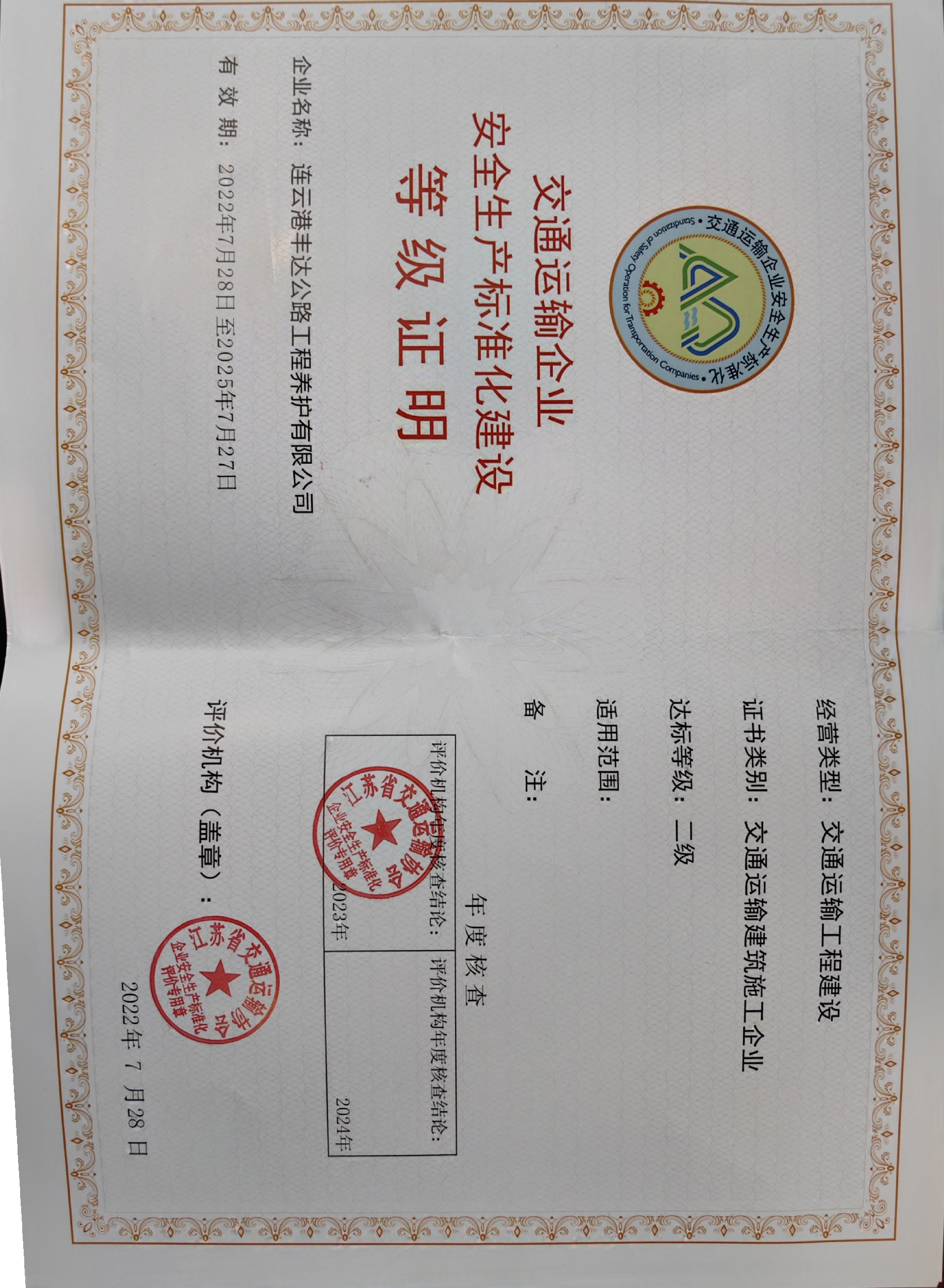 7月5日,丰达千亿官方网页版顺利完成交通运输二级安全生产标准化企业年度复审工作。