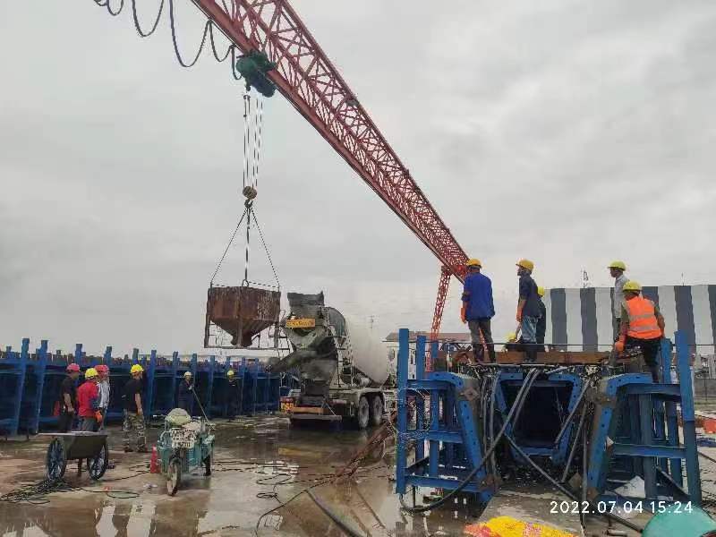 7月4日,在江苏海建千亿官方网页版402省道赣榆南环段路基桥涵工程S402GYNH-SG2标合同段梁场,上部结构箱梁第一榀预制在历时3.5小时后完成混凝土浇筑,这标志着402省道赣榆南环段路基桥涵工程上部结构施工正式启动。