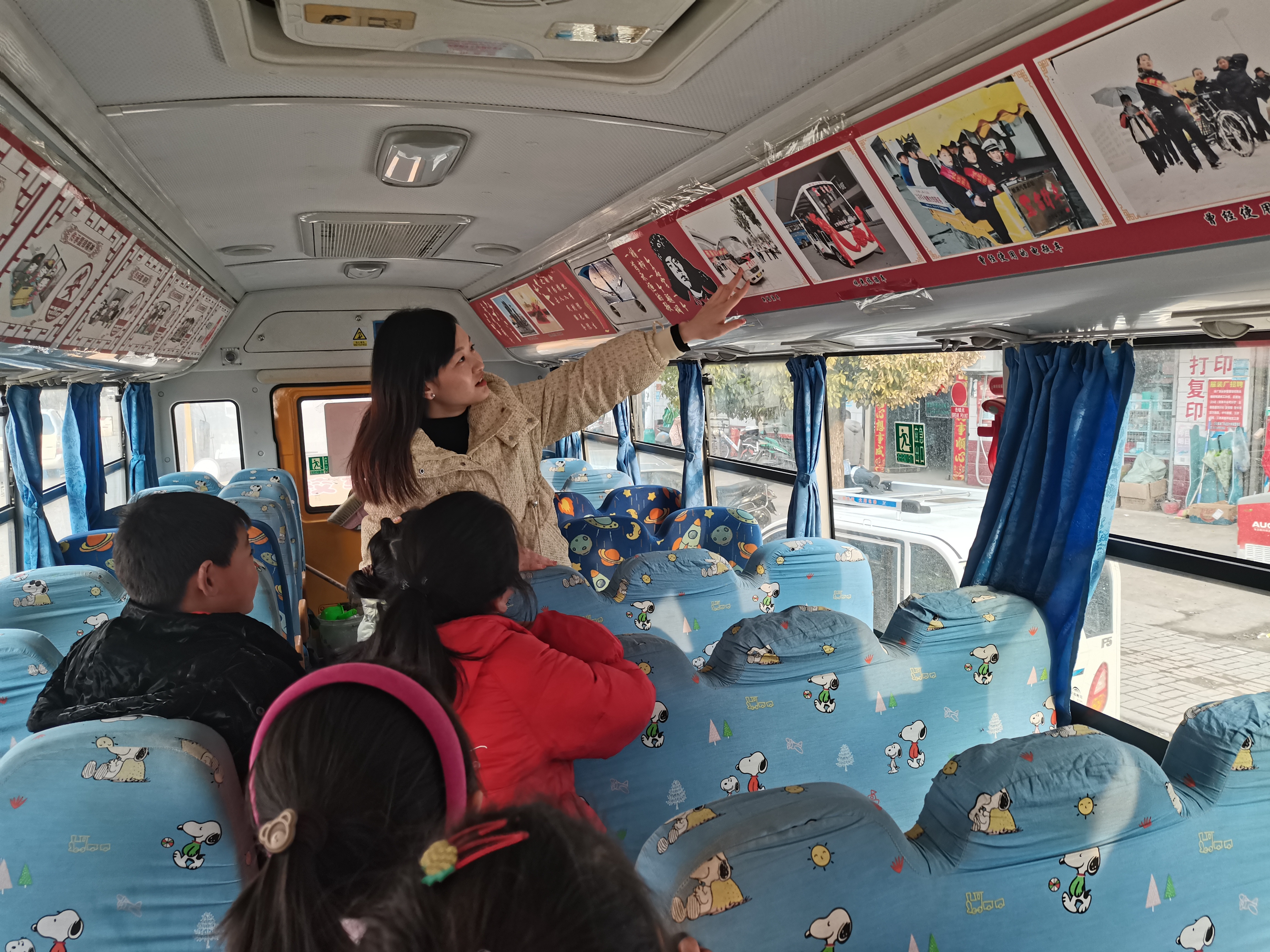 校车中心小学照管员胡燕则在车厢内张贴了关于学习雷锋精神的画报,并通过互动的方式,让乘车学生们畅谈自己对雷锋叔叔的了解。她为同学们讲述了雷锋乐于助人的小故事,鼓励同学们学习雷锋精神,讲文明,树新风,做新时代正能量好少年。