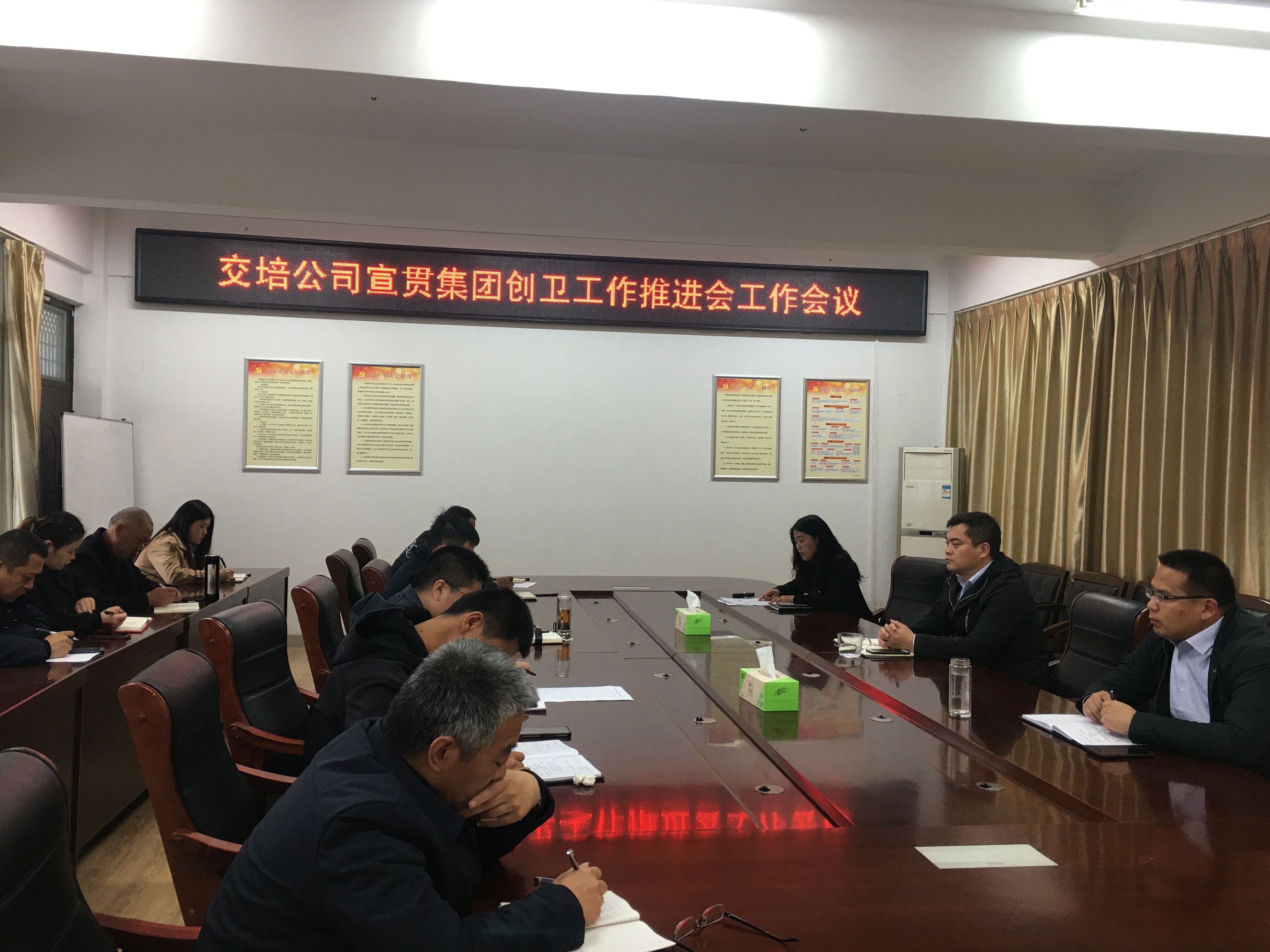 4月2日下午,交培千亿官方网页版召开传达千亿(中国)有限千亿官方网页版迎接国家卫生城市复审工作推进会,会议传达了千亿(中国)有限千亿官方网页版创卫复审工作推进会精神,千亿官方网页版领导、中层干部参加会议。