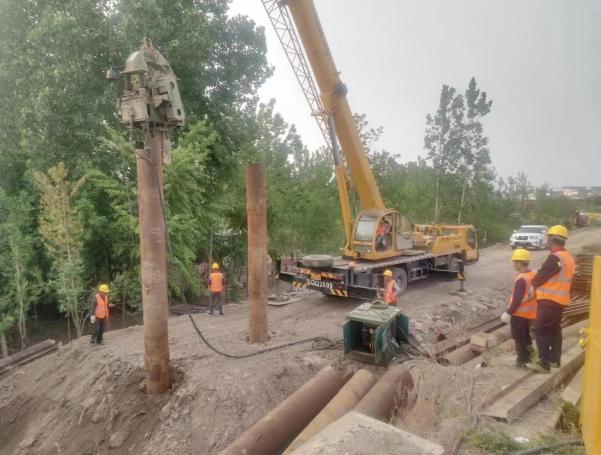 原磕头桥老桥桥头58m,上部结构采用(1X30+3X160+1X30)m钢筋混凝土板梁,矩形梁,下部结构采用桩柱式桥墩,重力式桥台。该桥2010年经检测评定为危桥,后进行简单维修加固处理限载继续使用,现将老桥全部拆除重建。重建后磕头桥全长612m,跨沿河河道采用挂栏施工,按三级公路标准建设,双向两车道,路基及桥梁宽度均为15m,项目工期12个月。