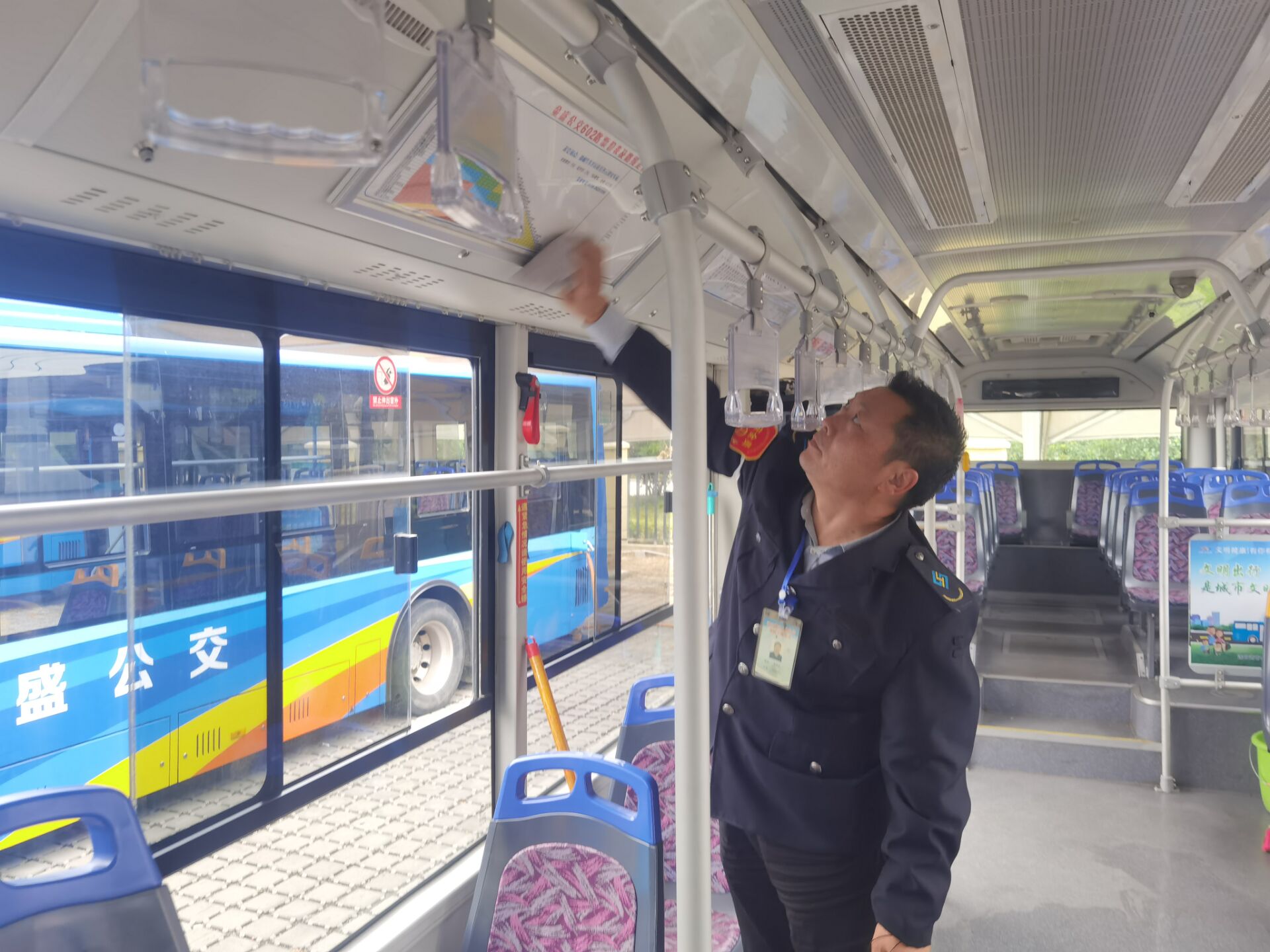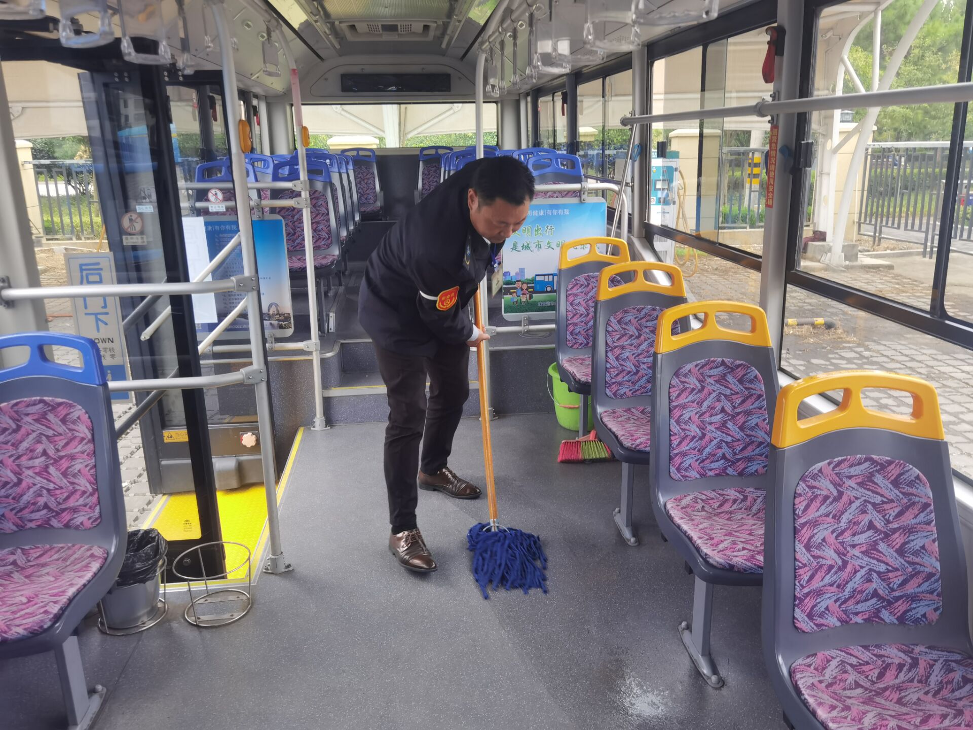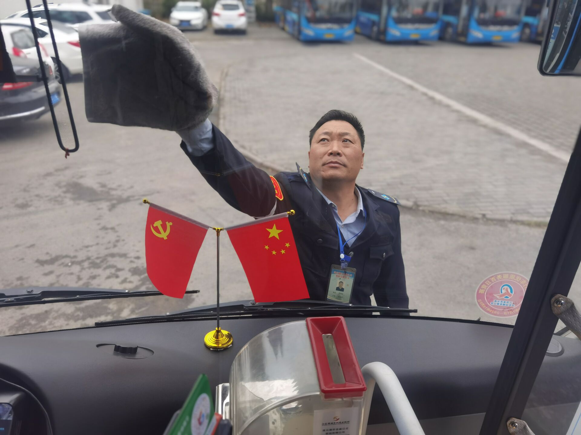 10月1日早上5点多,603路驾驶员樊耀声就已经来到千亿官方网页版,检查过车辆安全后,打上一瓶消毒液,把车厢内仔细消杀了一遍,打开了车里所有的窗户,再用抹布把车厢座椅及扶手抹上一遍。等一切工序做完后,樊耀声利用最后一点时间,急忙把从家里带来的煎饼啃上几口,便驱车驶入602路发车区,开始了一天忙碌的工作。当问到樊耀声,“别人放假了,休息了,陪着孩子出去玩了,您心里难受吗”?樊耀声摇摇头道:“假日里的公交车不能没有人开,市民的安全出行需要有人来保障,祖国的繁荣富强,百姓的安居乐业,需要我们公交人的坚守,才能让更多的市民过上一个祥和的节日,孩子会理解的。”