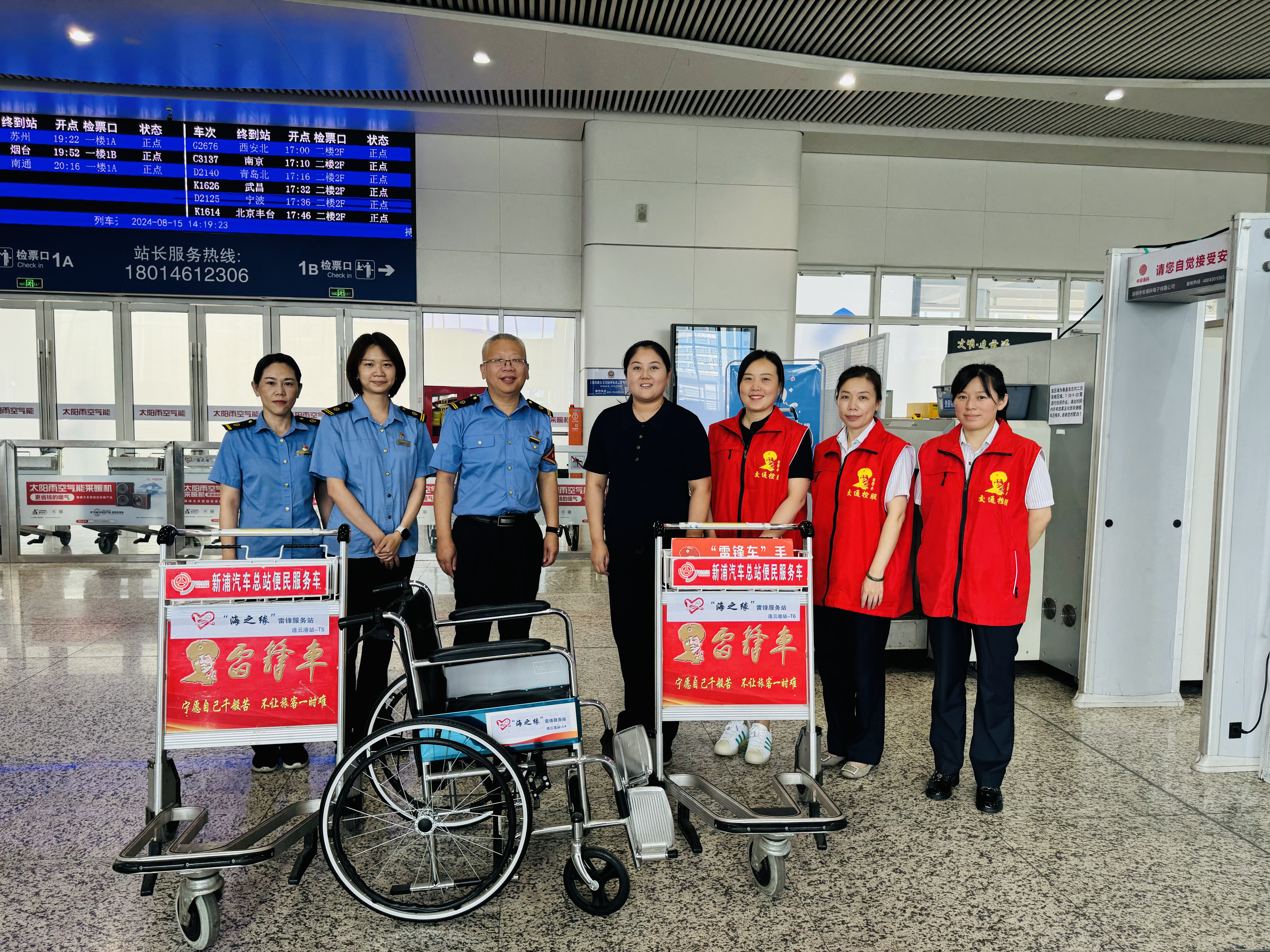 生产班组则聚焦服务质量和服务效率的提升,将“三组联建”与驿站日常运营紧密结合。通过优化服务流程、加强技能培训、完善服务设施等举措,生产班组有效提升了“雷锋车”驿站的服务水平。同时,驿站还积极引入新技术、新设备,如启用编号管理的手推车,实现与高铁站“海之缘”志愿者服务站的深度联动,为旅客提供更加便捷、高效的行李运输服务。