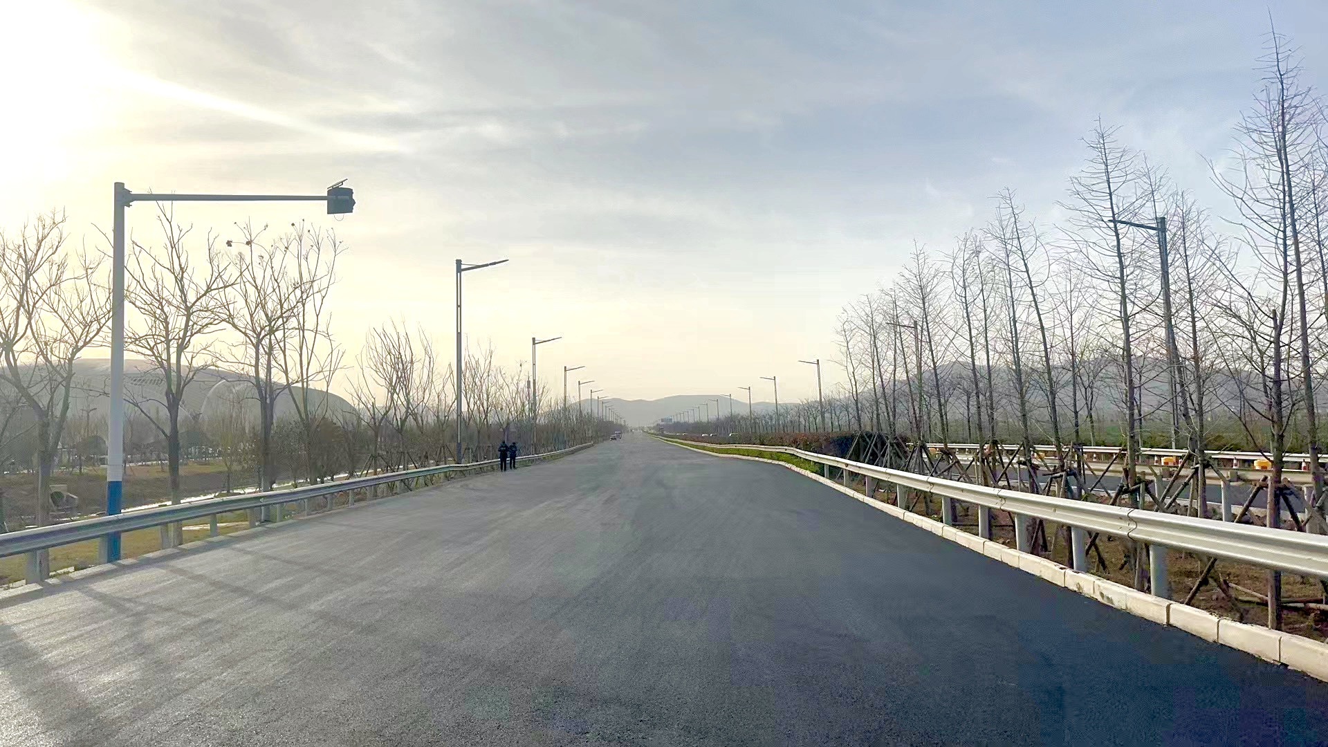 3月24日,在徐新公路(花果山大道-烧香河大桥北桥头段)项目施工现场,随着路面摊铺机、压路机等机械轰鸣声渐息,沥青混凝土路面顺利铺筑完成。