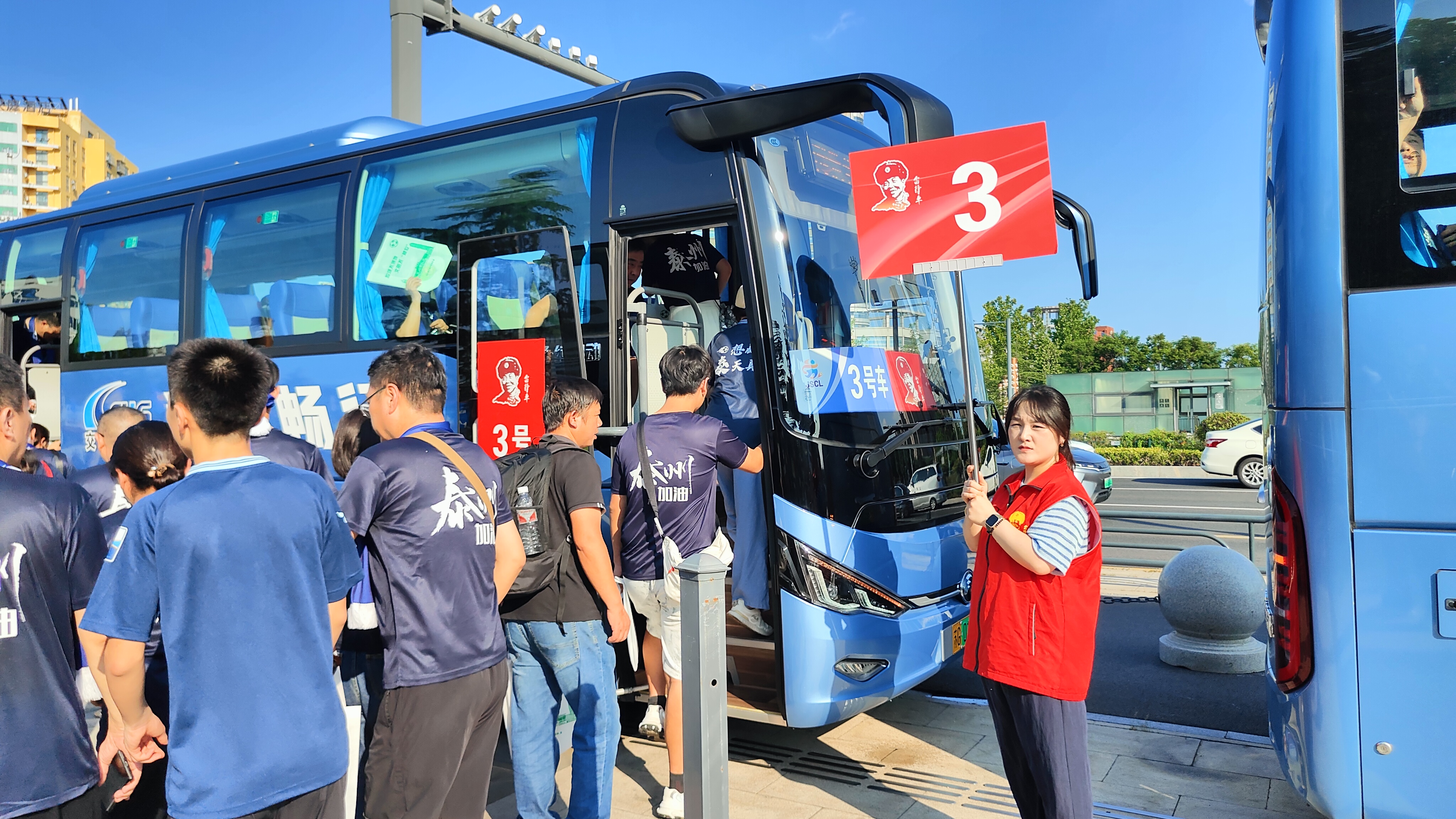 夜幕降临,赛事落幕,赛场出口处的“雷锋车”手引导员们排成两列,举着指示牌在人群中组成通道,“往这边走,直达高铁站”的声音此起彼伏。他们一边引导方向,一边贴心提醒球迷们注意安全,直到最后一名泰州球迷平安坐上返回高铁站的接驳车。
